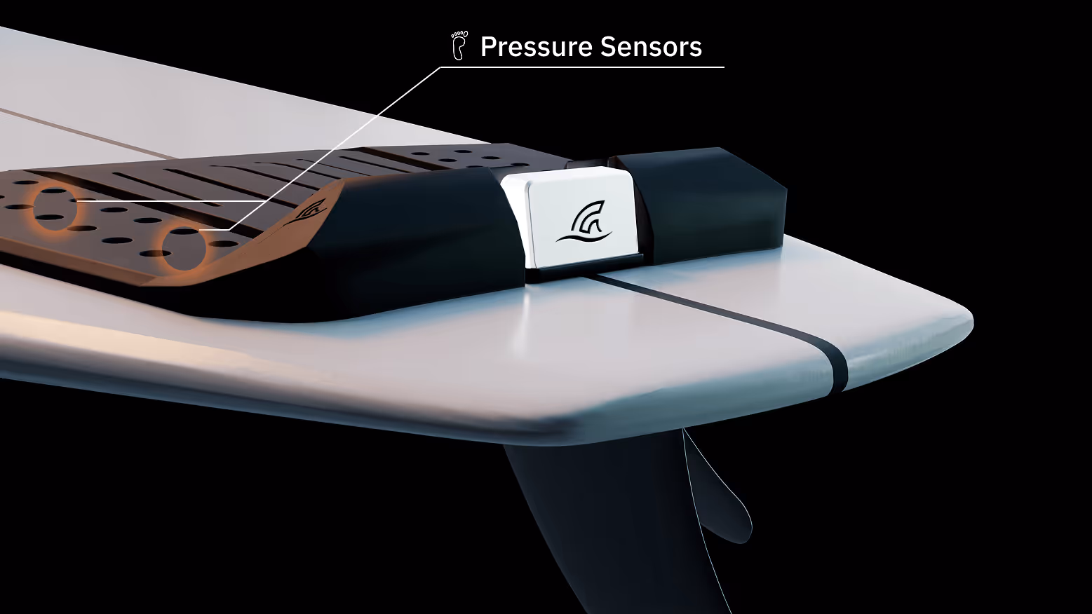 Integrated pressure sensors under the traction pad measure how you apply weight through your feet – revealing stance shifts, front–back balance, and pressure timing across maneuvers.